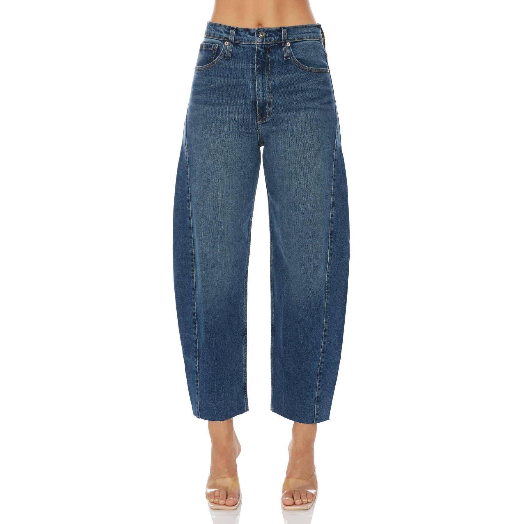 Effortlessly cool with a sculptural edge, the Barrel jean redefines relaxed structure. Designed with a voluminous curved leg that tapers at the hem, this silhouette creates a bold yet wearable shape. Crafted in premium denim with subtle distressing at the raw hem, it delivers an elevated, modern take on everyday dressing.