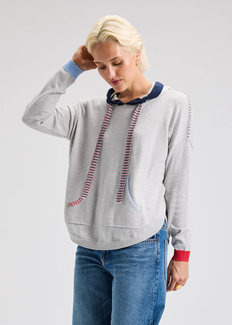 Add a pop of playful charm to your off-duty wardrobe with the Zaket & Plover Layla Pocket Hoodie in Chambray. Crafted in a soft cotton-cashmere blend, this cozy top features cheerful striped drawstrings, contrast stitching, and bold cuff accents. A fresh chambray base is elevated with a lime hood lining and whimsical details that make layering a joy. Pair it with your favorite denim or crisp white pants for an effortless weekend look!