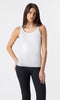 A vegan leather and chain detail frames the neckline of this fine rib tank, bringing a subtle edge to its sleek silhouette. A wardrobe essential, it pairs perfectly with jeans or layers effortlessly under a blazer or jacket.