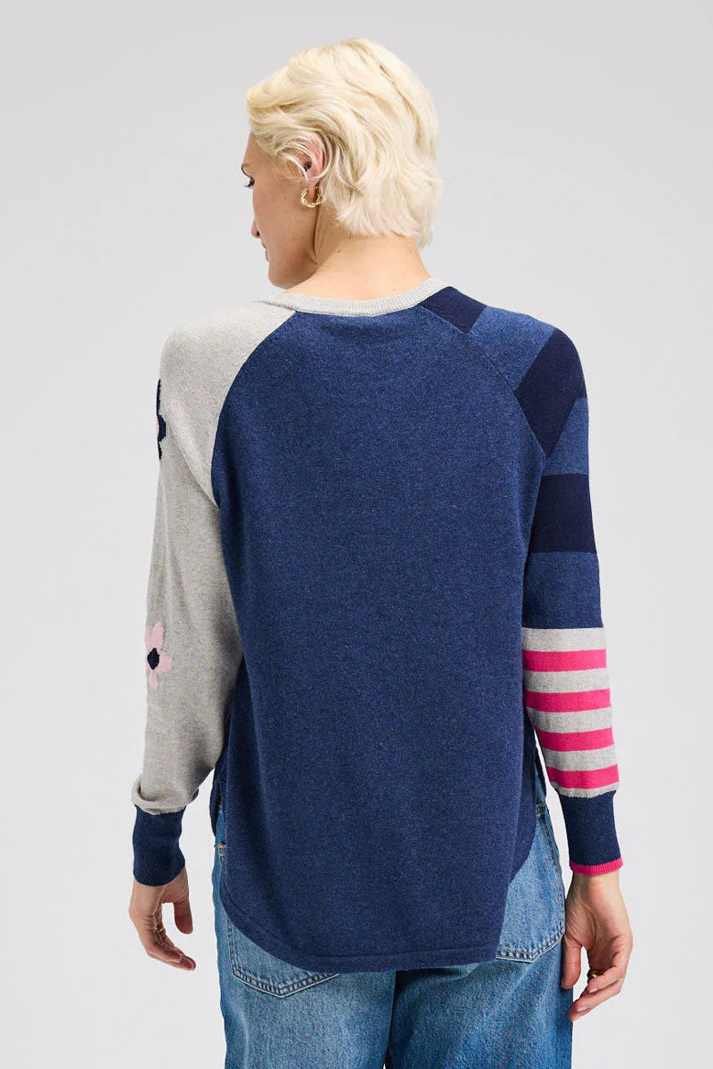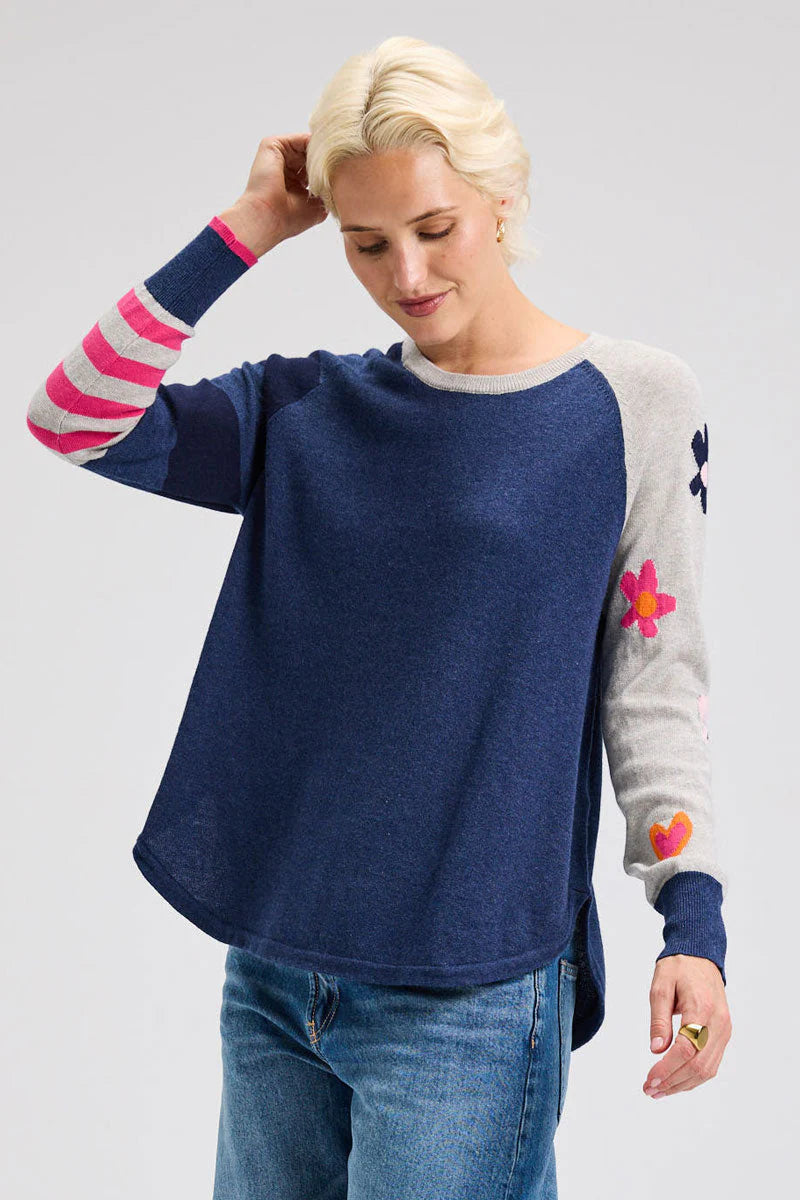 Elevate your casual wardrobe with the Zaket & Plover Po Stripe Sleeve Sweater. This refined piece features delicate flower and heart embellishments on one sleeve, balanced by elegant stripes on the other, creating a subtle yet captivating contrast. Its versatile charcoal hue seamlessly integrates into any ensemble, offering cozy warmth and sophisticated charm for relaxed outings or everyday wear. This sweater combines tasteful design with comfort, ensuring you feel effortlessly stylish and composed.