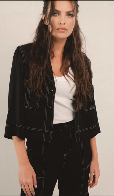 Corlys Stretch Tencel Cotton Double Placket Snap Jacket