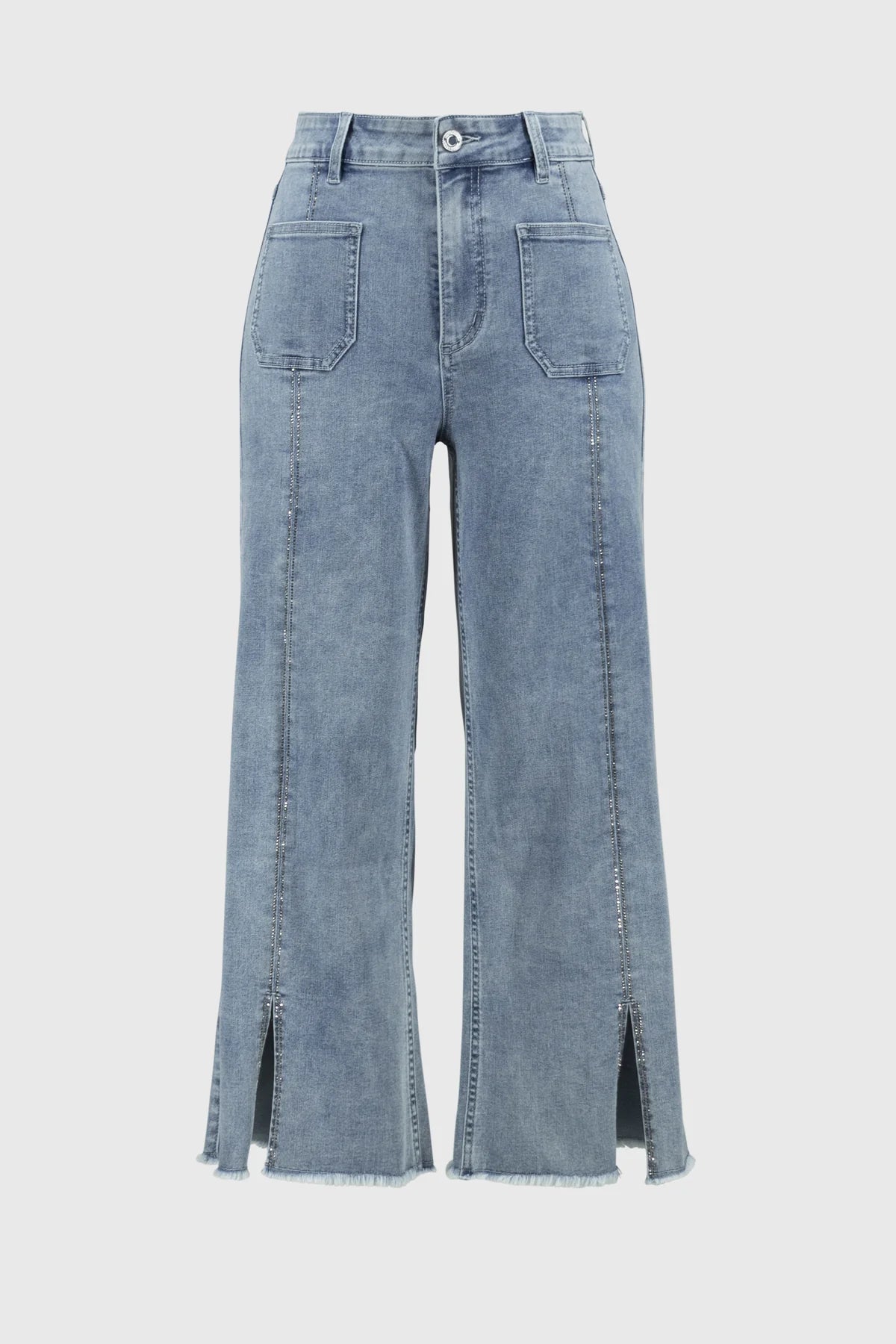 Elevate your denim collection with these culotte embellished front jeans, where contemporary silhouette meets refined detail.