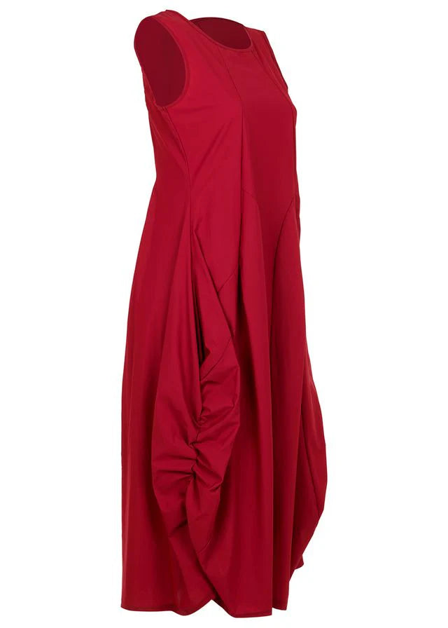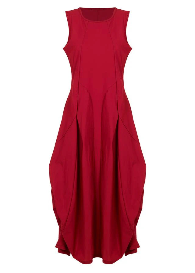 This sleeveless design contours comfortably through the bust and waist, while the bell-shaped skirt adds a graceful touch, enhancing both comfort and versatility.