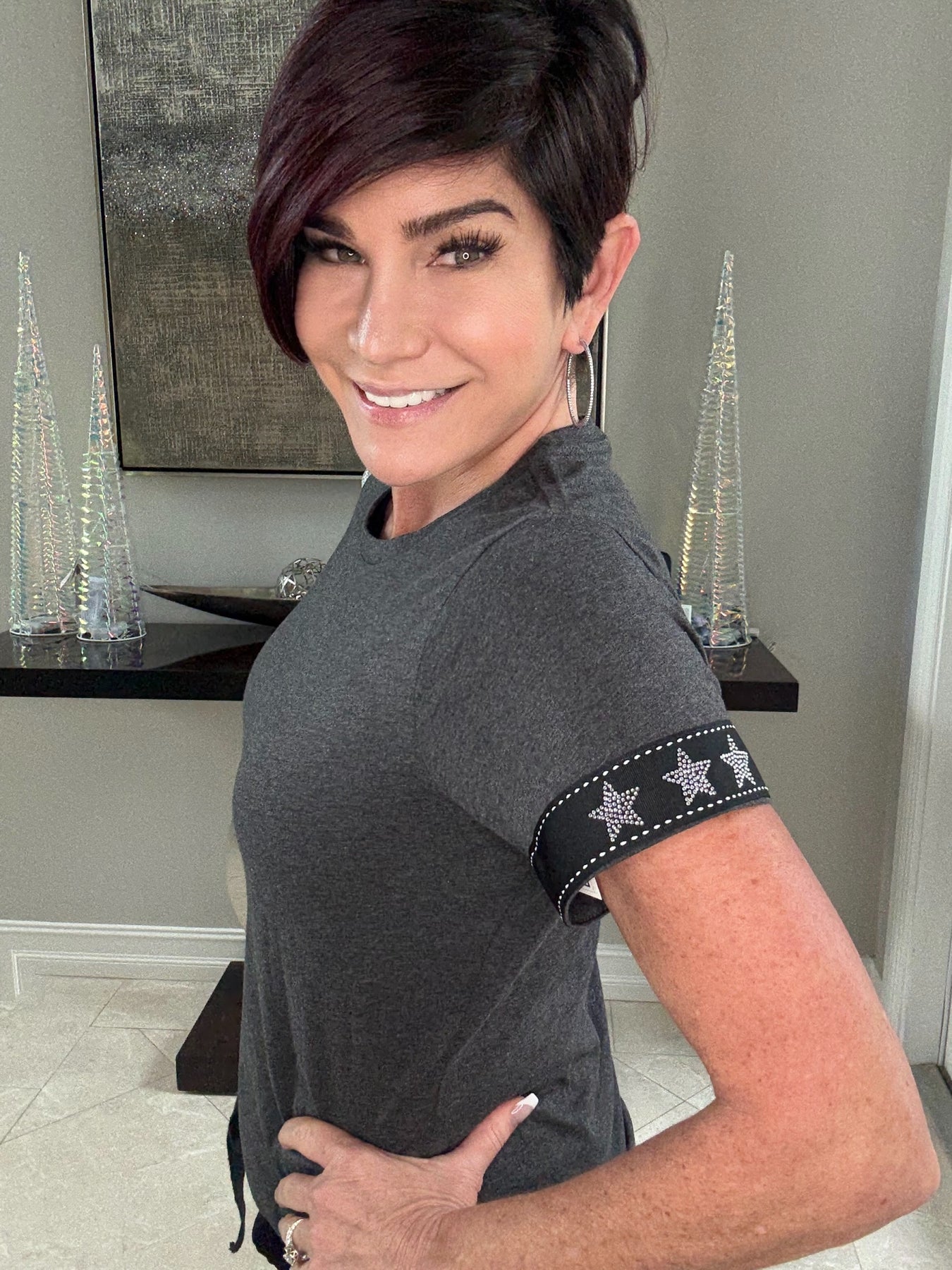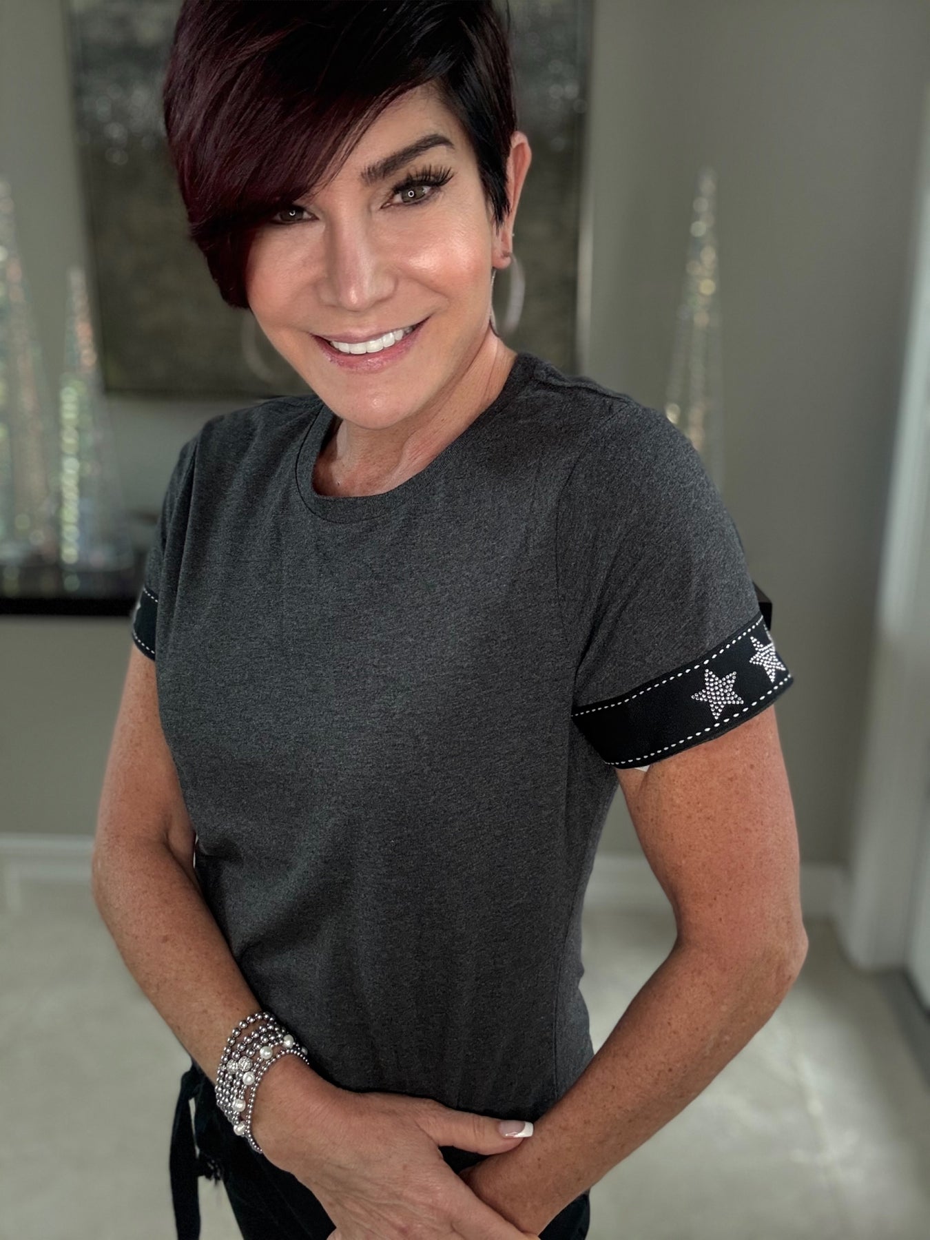 Stop your search, you've found the perfect tee! Say hello to the Women's Ribbon Triple Star Top by Suzy T - a fab tee that adds out-of-this-world charm to any outfit. With short sleeves and a crewneck, the real star of this top is its ribbon and stars on the sleeve. One in crisp white, the other in shining silver beads. Made with 100% cotton, it guarantees comfort and style whether you're rocking it with jeans or a skirt. Plus, it's a breeze to put on and can be easily washed in the machine. Trust us, this playful and quirky piece will be a hit in your laid-back or casual evening wardrobe. Model is wearing a size S (5'6" height, 34" bust, 28.5" waist, 31" hip, 29" inseam).