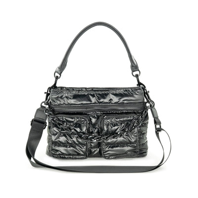 Monroe Black Flower Vegan Leather Top Handle Bag