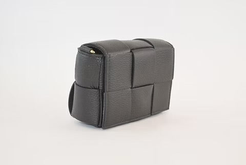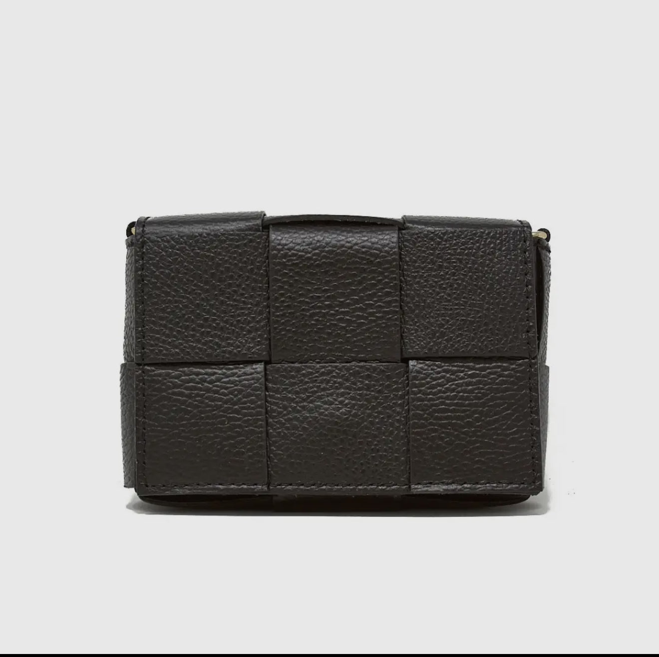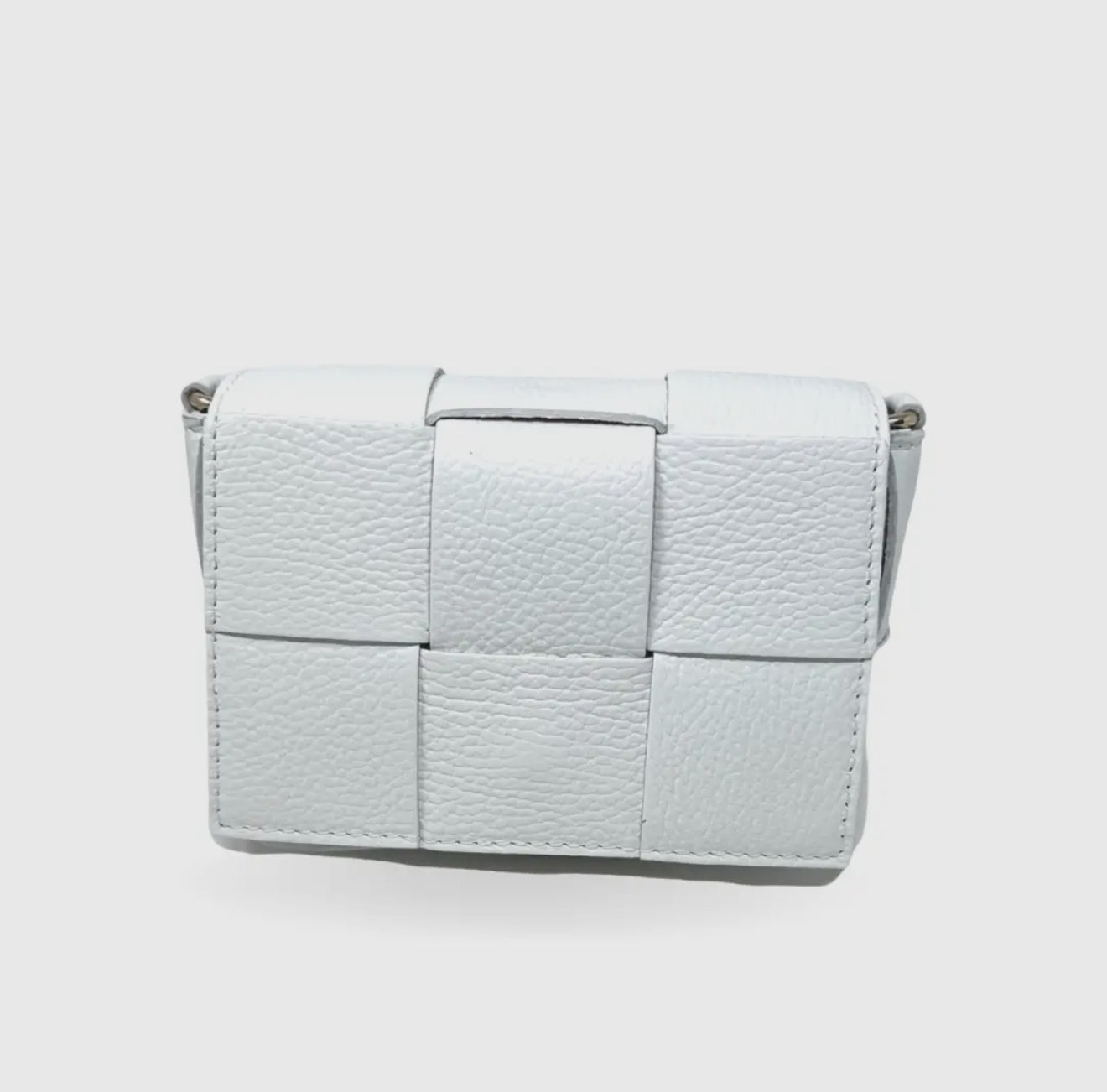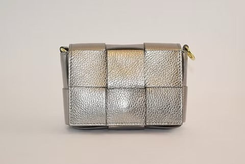Exquisitely crafted from genuine Italian leather, this sophisticated handbag showcases an elegant, braided design complemented by luxurious gold hardware. The thoughtfully designed removable and adjustable crossbody strap offers versatile styling options for any occasion. Secure your essentials with the refined fold over front snap closure. Perfectly proportioned at 6"W x 4.5"H x 2"D, this timeless accessory seamlessly transitions from day to evening with understated elegance.