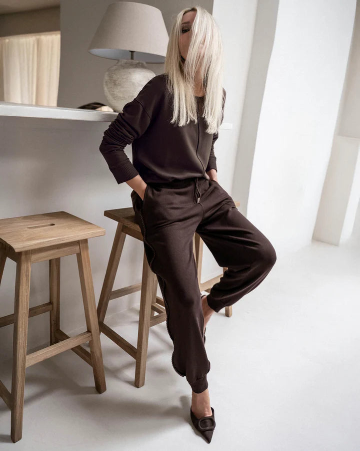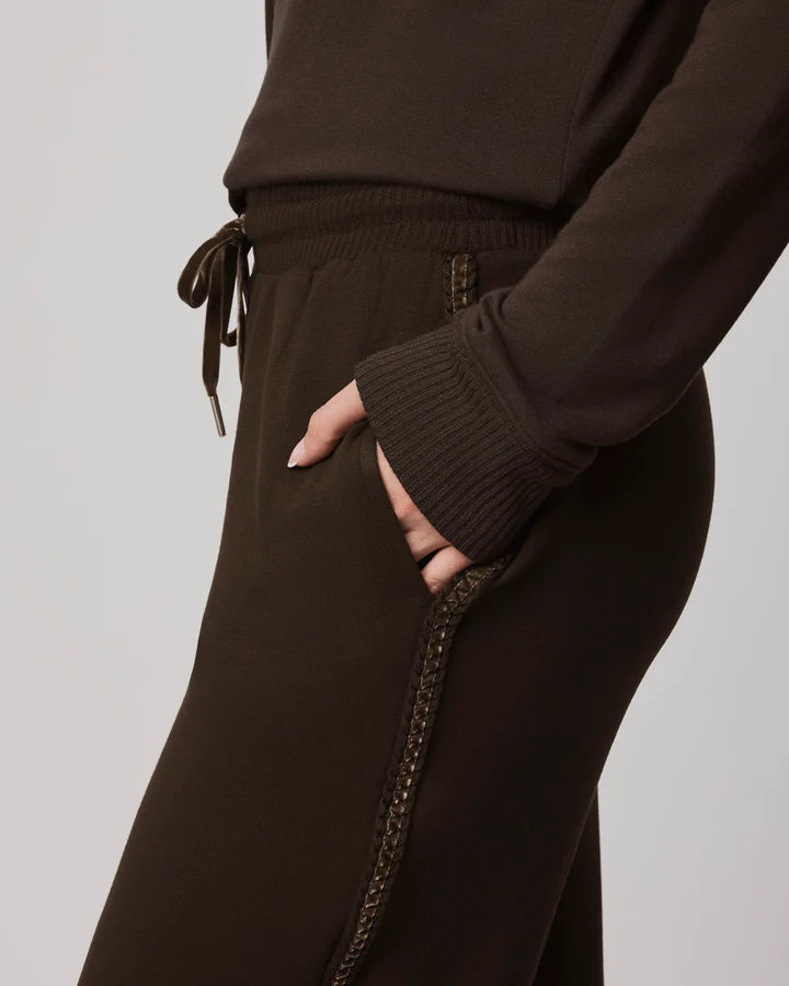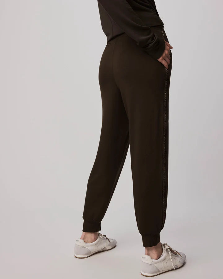 This incredibly soft jogger is crafted with LENZING™ECOVERO™ fibers, which are derived from certified renewable wood sources, plus a touch of stretch for a perfect fit. Designed with a relaxed silhouette, ribbed cuffs, and an adjustable drawstring waist, this jogger also features braided trim down the outer seams for a subtle statement. Pockets only add to this pair's effortlessly cozy vibe.