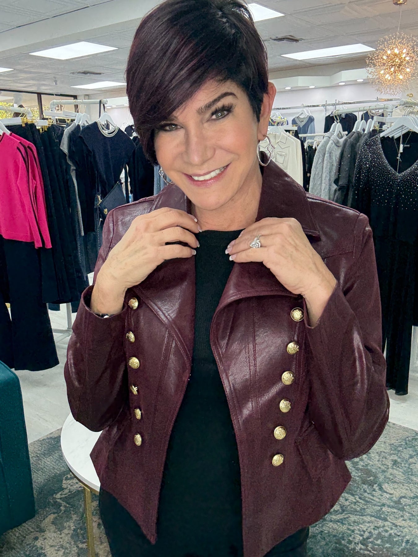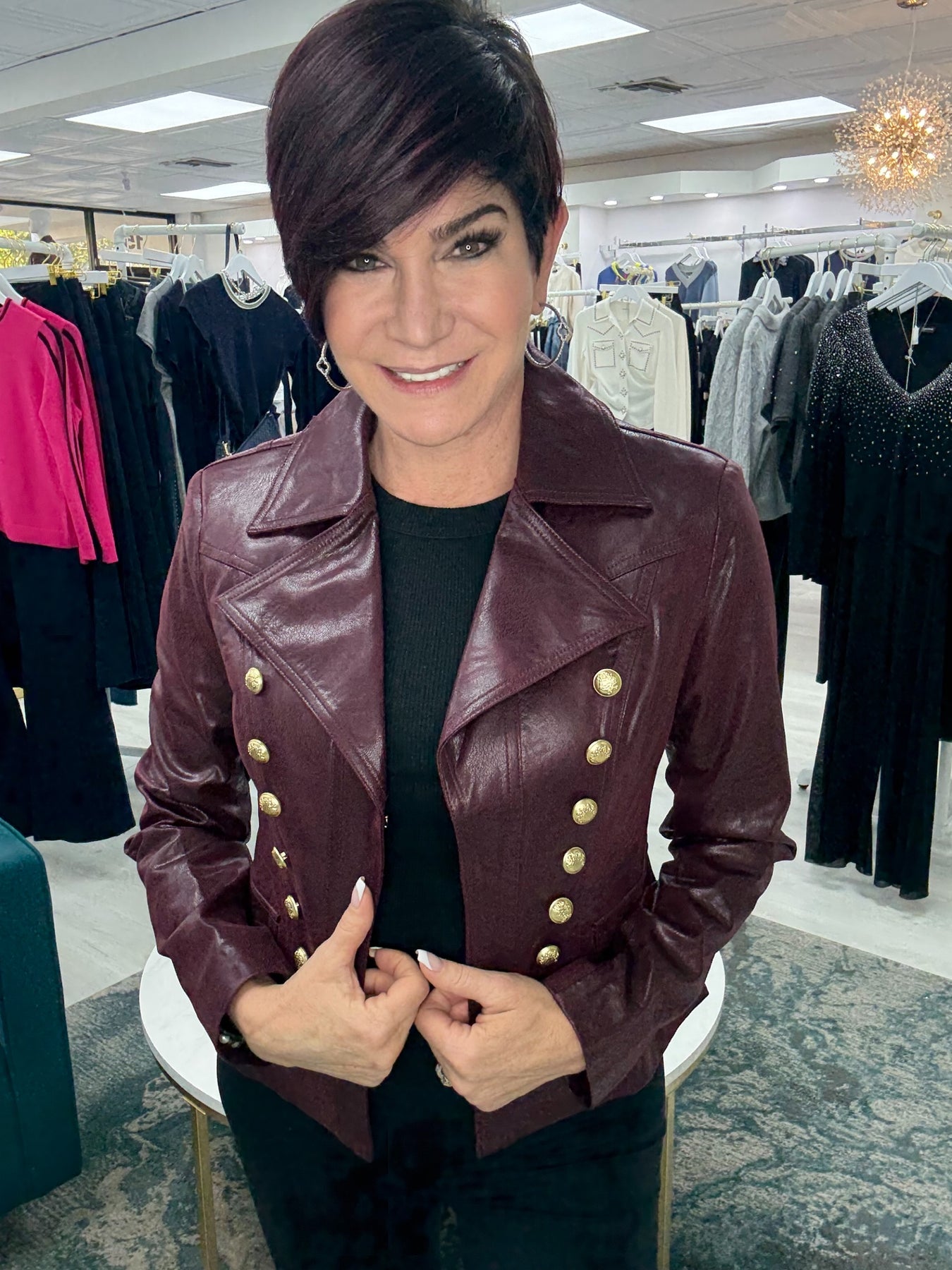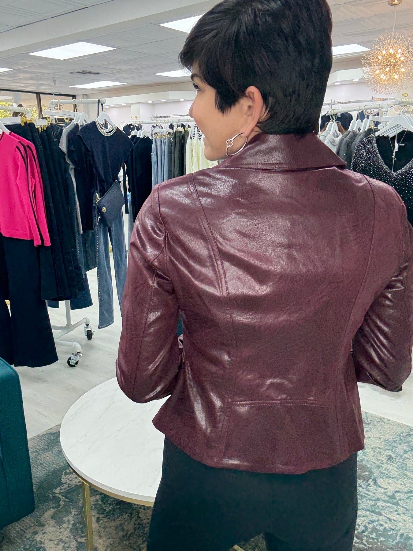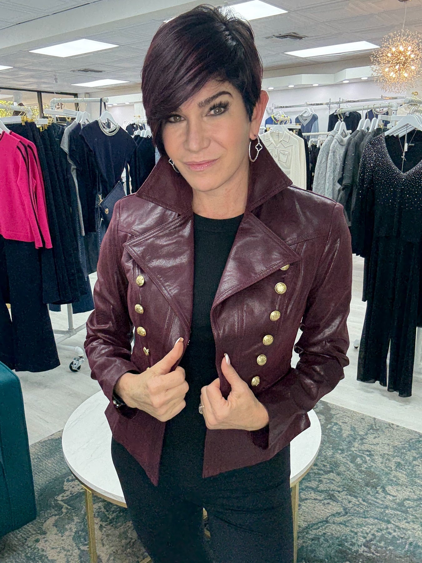 Gorgeous Button Detail Vegan Leather Jacket Wine