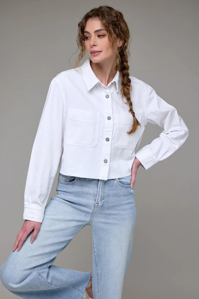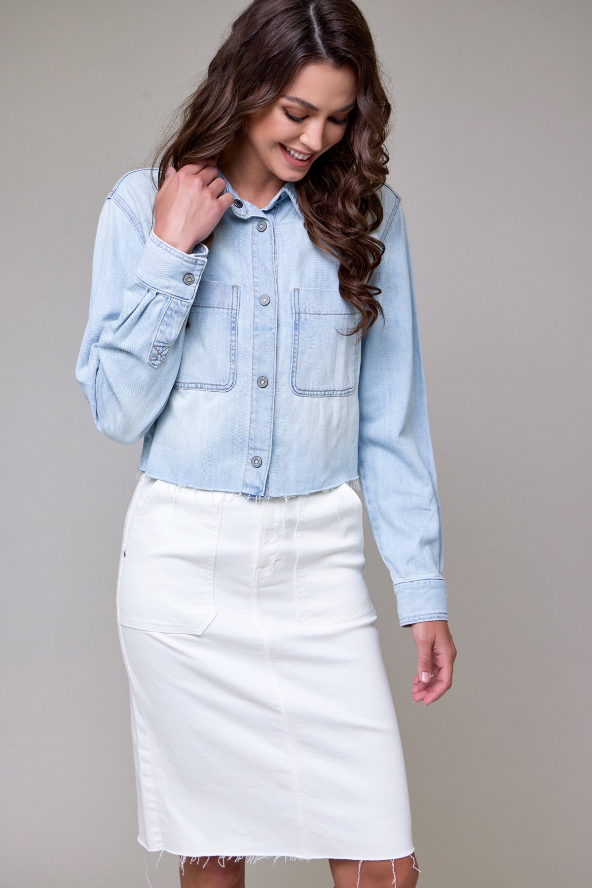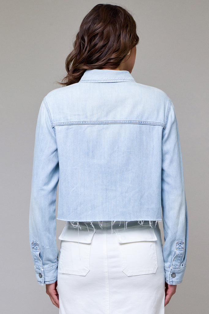 This cropped version of a classic shirt jacket made from Non-stretch denim with a clean raw hem is ready to upgrade your off-duty style.