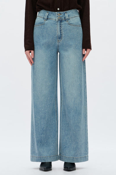 Ultra Rhinestone High Waist Wide Leg Jeans