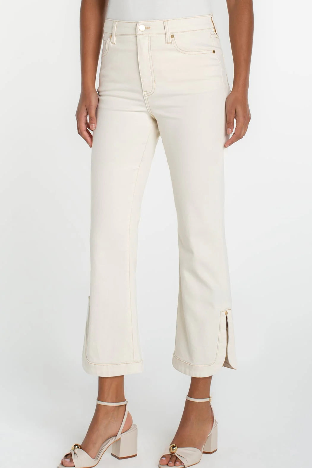 Hannah Crop Flare With Tulip Hem Elevate your denim collection with this refined crop flare featuring a distinctive tulip hem and high-rise silhouette. Crafted in luxurious light cream denim, this piece seamlessly transitions from casual weekends to polished evening wear. The flattering high-rise cut elongates the leg while the gently flared hem adds movement and contemporary edge. Perfect for styling with everything from minimalist tees to silk blouses, this versatile staple embodies modern sophistication with timeless appeal.