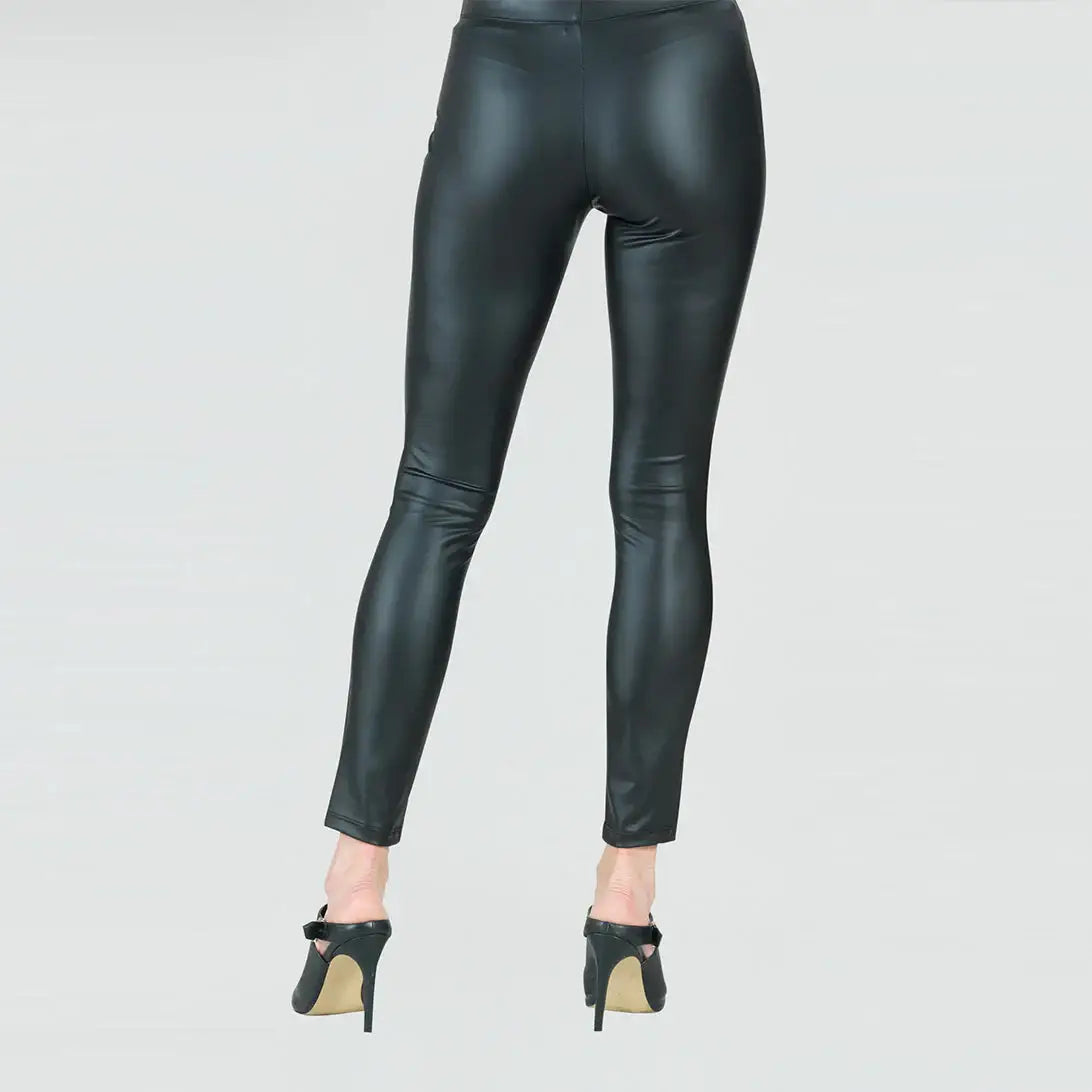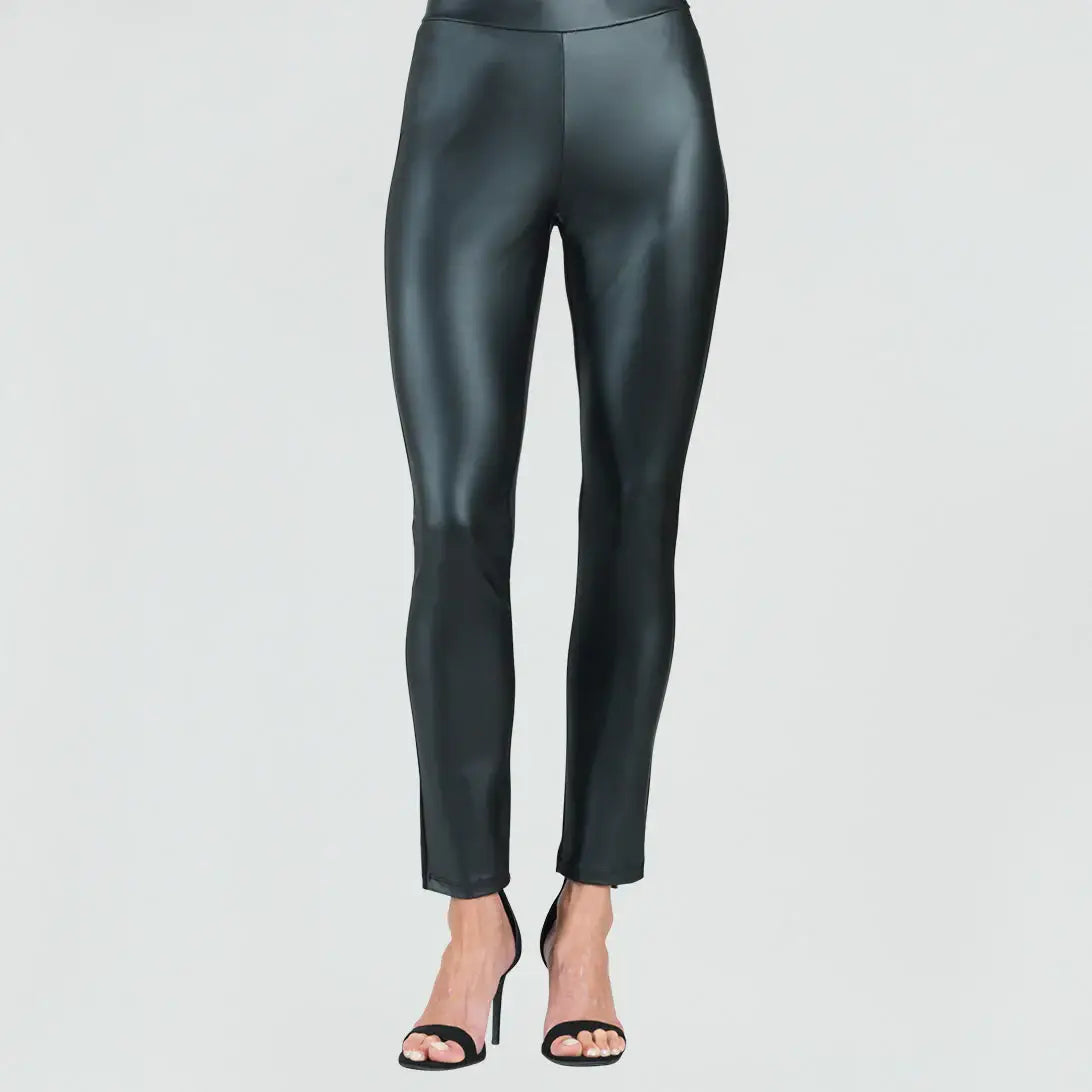 Your night out is not complete without our Best Selling Vegan-Friendly Liquid Leather Leggings. This legging features a beautiful, soft-sheen finish, a 1” pull-on elastic waistband, and a slim-leg ankle hem. A style that will flatter any figure & the best part is while they have a slimming silhouette they are not skin tight so won't reveal any body flaws.