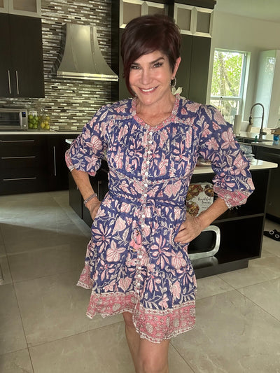 This Aava Mini Salrosa Dress features a cotton-silk blend fabric and a flattering adjustable tie at the waist.