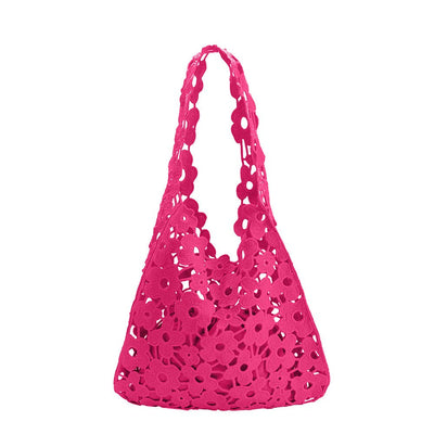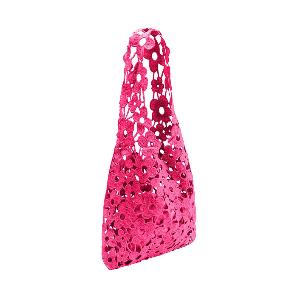 Perfect for day-to-night wear, it features an interior drawstring pouch to keep essentials secure while maintaining its openwork charm.