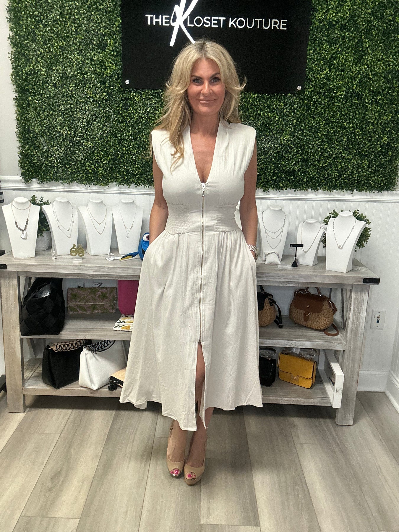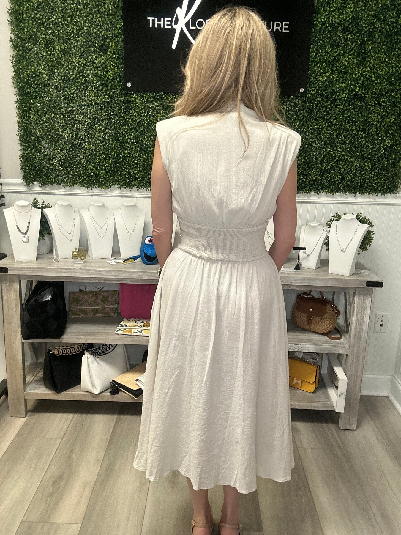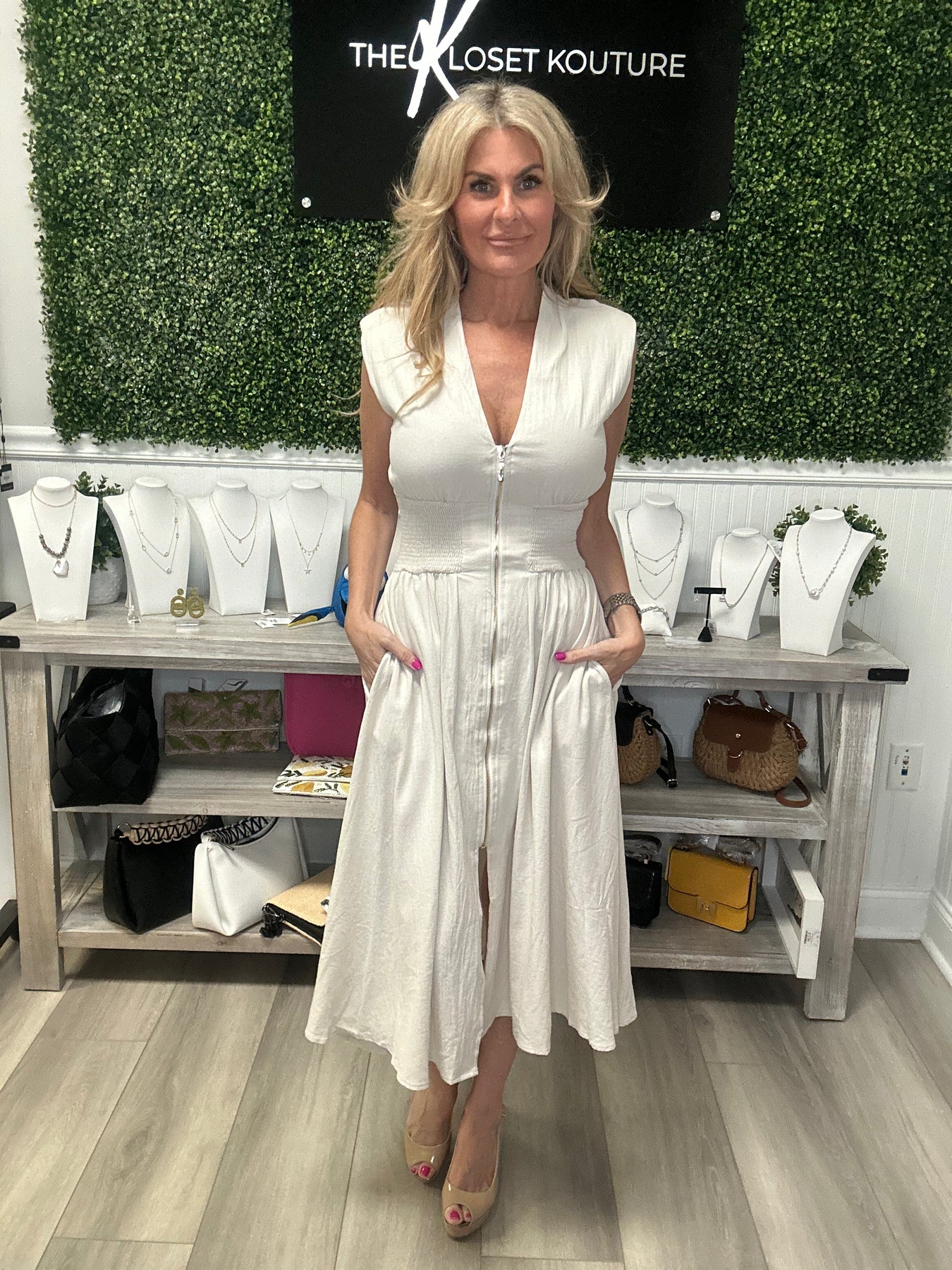Get ready to strut your stuff in our Smocked Waistband Dress! This midi dress features a front zipper and is made with high-quality, comfortable fabric. Perfect for any occasion, dress it up or down for a versatile and trendy look. 100% Cotton, lining 100% polyester. true to size.