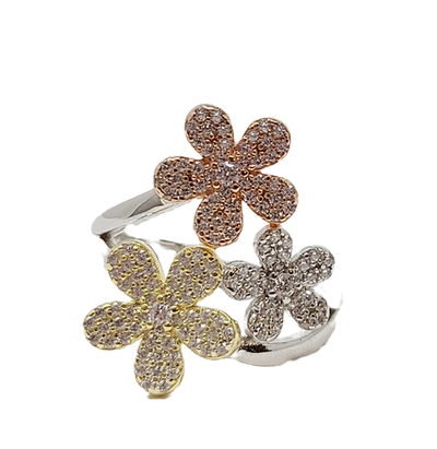 Tri Color Flower Pave Ring